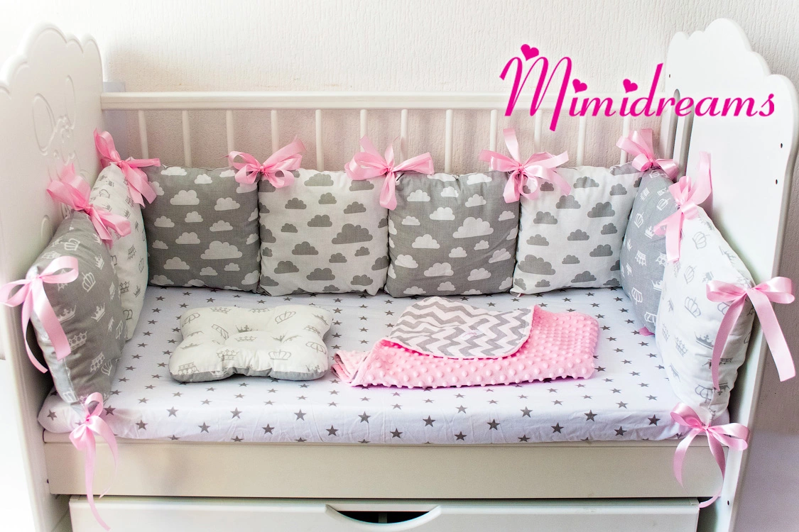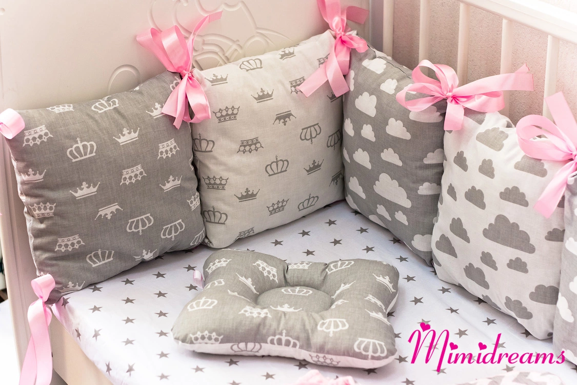4. защита бортики в виде декоративных подушечек (8шт) 100% хлопок производства Польша, наполнитель холофайбер
